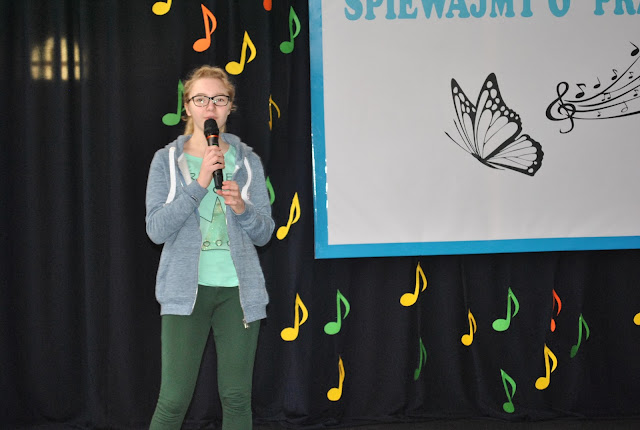 W przerwie między występującymi szkołami śpiewany był hymn ekologiczny ułożony specjalnie na tę okoliczność przez panią Katarzynę Marciszkę; naszą polonistkę.